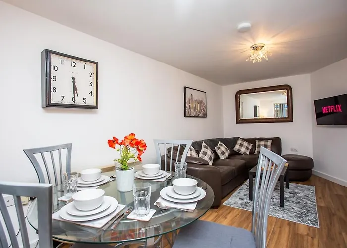 Die 60 m² große Ferienwohnung Modern 2Br Pad - 4 Min To Station, Fast Wifi And Smart Tvs! Newcastle upon Tyne in Newcastle upon Tyne befindet sich etwa 300 Meter von der Grey Street und etwa 5 Gehminuten von der Kathedrale von Newcastle upon Tyne entfernt. Das 1-Zimmer-Apartment bietet eine Gemeinschaftslounge und liegt in 550 Meter Entfernung vom Grainger Market.